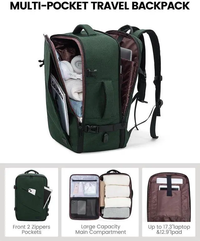 LOVEVOOK Travel Carry on Backpack, Large 40L Personal Item Travel Bag for Men & Women Flight Approved with 3 Packing Cubes, Suitcase Water Resistant Luggage Daypack Business Weekender Bag