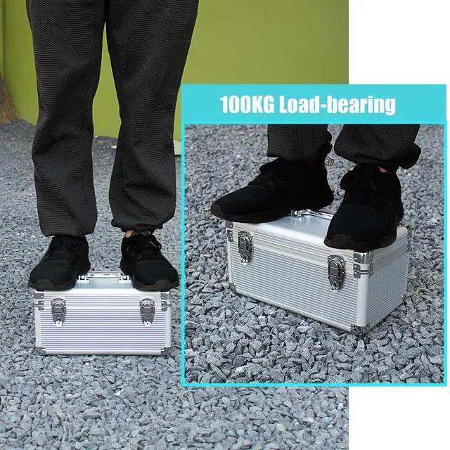 Aluminum structure: 100KG load-bearing, strong and durable, not easy to deformation. 6 panels are made of composite wood material + silver aluminum foil. The internal slot is made of high density EVA material. The internal top is highly elastic wavy Sponge for hard drive protection.