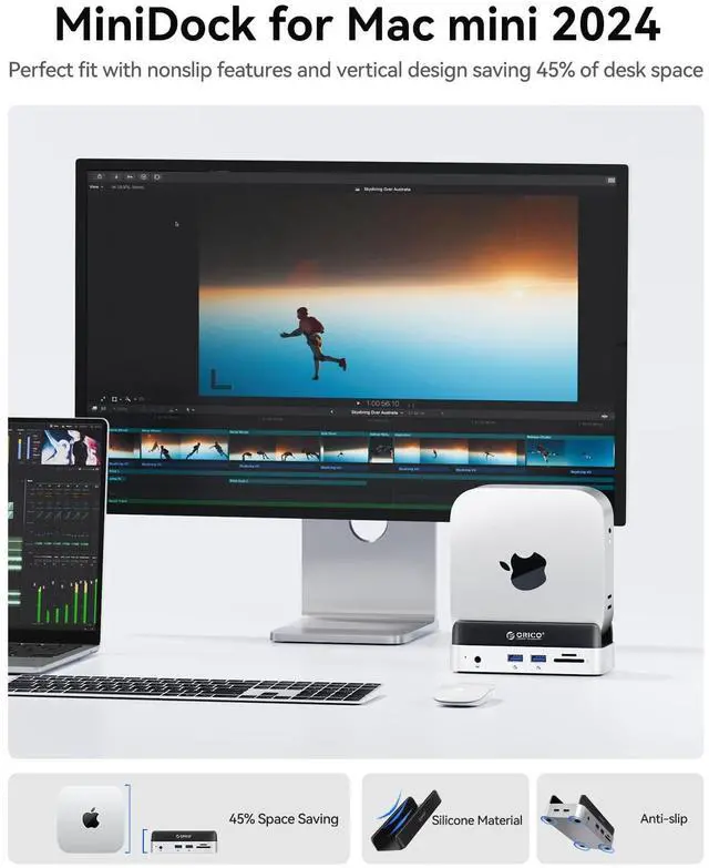 Space-Saving Vertical Design: The ORICO Mac mini M4 Stand and hub optimizes your desk space by tucking vertically under your Mac Mini M4/M4 Pro (2024), saving up to 45% desk space. (Size - L: 13.5cm/ 5.3in; W: 6.5cm/ 2.5in; H: 4.35cm/ 1.7in)