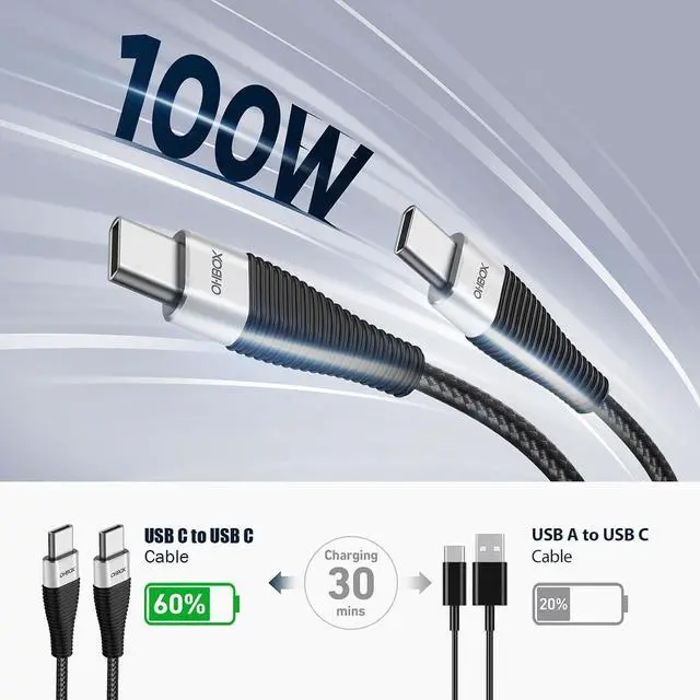 100 W Fast Charging and Data Sync: The USB C Cable supports PD3.0/QC3.0/4.0 fast charging up to 100 W Max (20V / 5A), works with USB-C Power Delivery adapters such as 30 W,45 W,60 W,70 W,80 W,100 W. Charges USB-C phones from 0% to 60% in 30 minutes, data transfer speeds