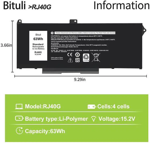 Compatible Part Numbers63Wh Type RJ40G 01K2CF 075X16 0WK3F1 005R42 RJ4OG