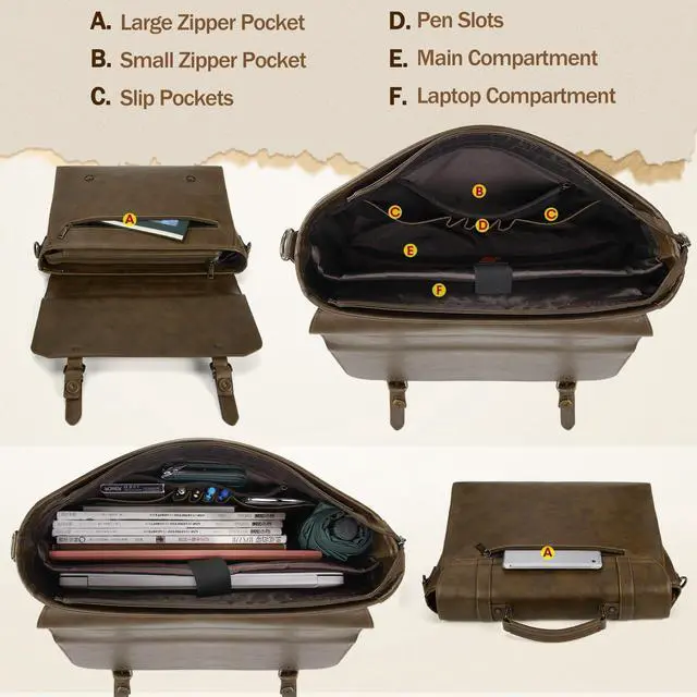 Durable & Vintage Messenger Bag: This leather bag is made of supple textured PU leather with a cowhide pattern which is durable and water-repellent. The durable thick nylon lining covers the inside of the bag, and the thick foam compartment in the middle can provide protection for your computer from collisions and impacts, which can ensure the use of long-term.