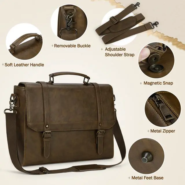 Practical Mens Work Bag: Featuring a comfortable leather handle, our computer bag offers practicality and comfort. Convenient magnet