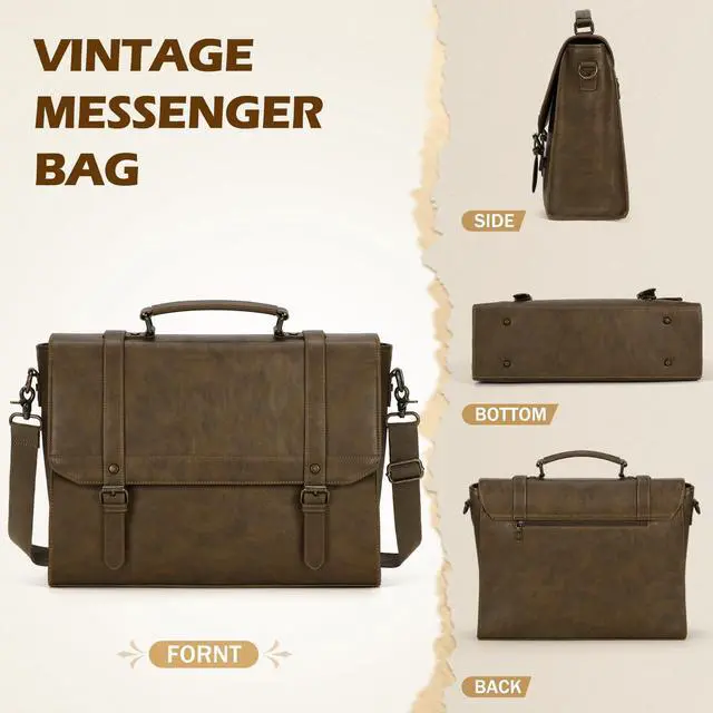 IGOLUMON Messenger Bag for Men 15.6 inch Vintage Leather Waterproof Laptop Briefcase for Men Large Computer Laptop Bag Leather Satchel Bag Retro Shoulder Bag for Office Business Travel College, Khaki