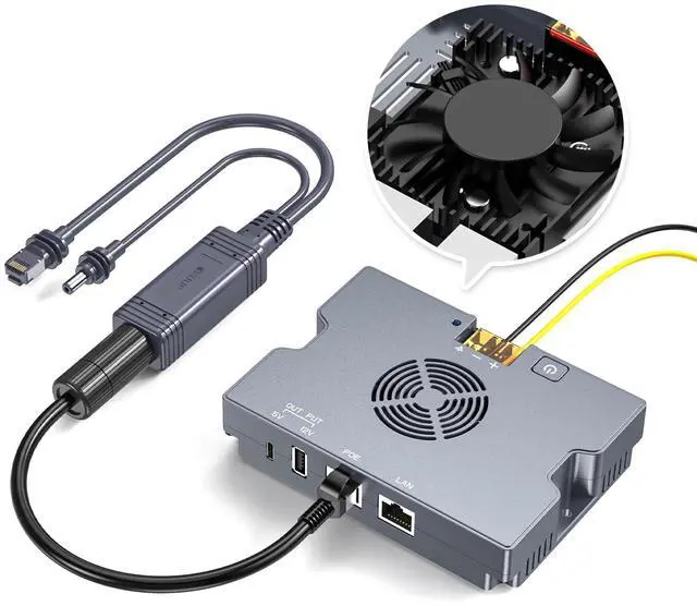 EDUP Starlink PoE Splitter Kit with Fan Heat Sink for Starlink Mini & Gen 3 Dish, 350W Power, 52V/6A Output, 9-36V Input, USB-A & USB-C Ports, GigE & ESD Protection, Smart Cooling, Rugged Metal Case