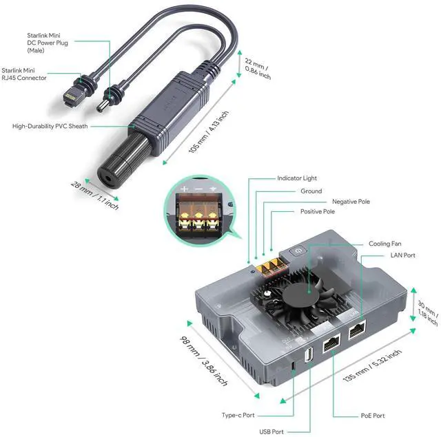 Universal Compatibility Starlink Gen 3 & Mini Ready Directly power Starlink Gen 3 or Mini without additional adapters. Includes a PoE splitter for seamless integration. Plug-and-playno complex setup required.