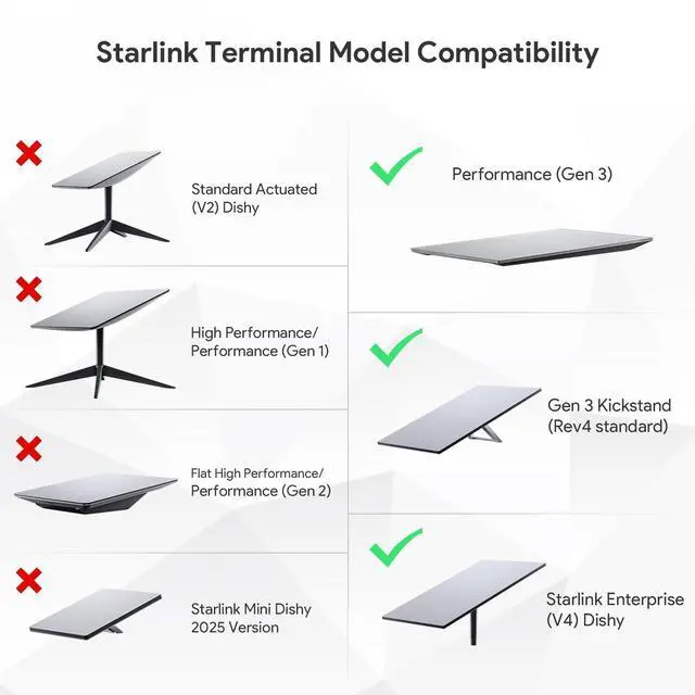 Wide Compatibility for Starlink Terminals: Specially designed for Starlink Standard (Gen3), Starlink Performance (Gen 3), and Starlink Enterprise (V4). Delivers stable and efficient power across multiple Starlink models, making it ideal for versatile installations. Includes a premium XT60 cable for direct connection to portable power stations or external batteriesensuring uninterrupted internet access whether at home, on the road, or off-grid.