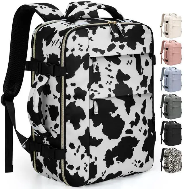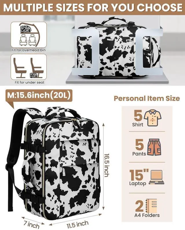 Pritent Travel Backpack for Women Man, Waterproof Personal Item Travel Bag Airline Approved Laptop Backpack Weekender bags Bookbag for Business,Travel, Work Fits 15.6 inch Laptop(Medium,Cowprint)