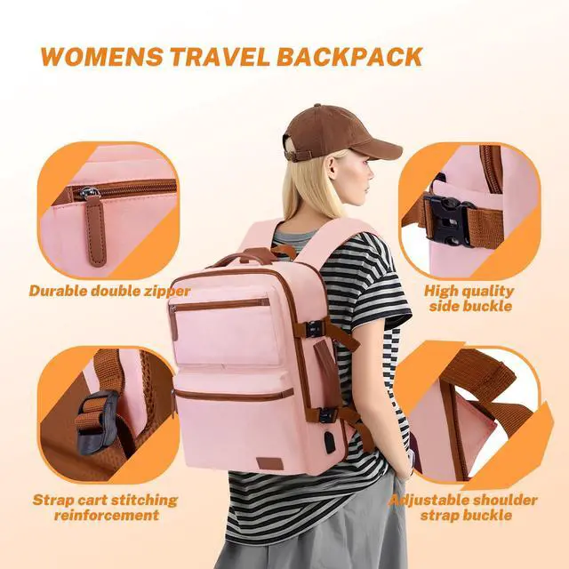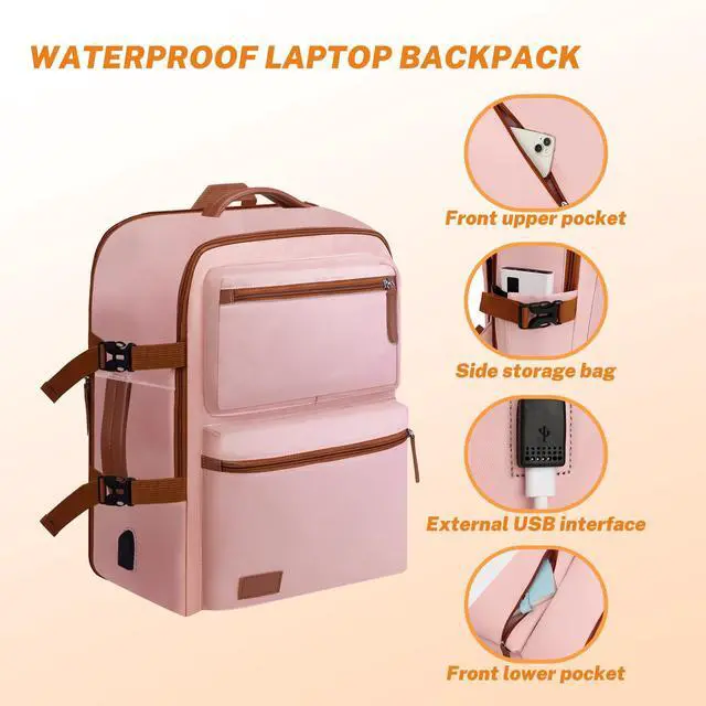 stillithou Expandable Travel Backpack Women Men with USB Charging Port, 15.6 Inch Laptop Backpack Waterproof Carry on Flight Approved for Travel Work Hiking College, Pink