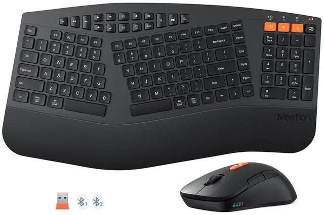 MEETION Ergonomic Keyboard and Mouse, Multi-Device Bluetooth Keyboard and Mouse Wireless, 4 DPI Adjustable Mouse, Full-Sized Split Keyboard, for PC/Computer/Laptop/Tablet/Window/Mac (2025 Upgrade)