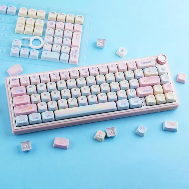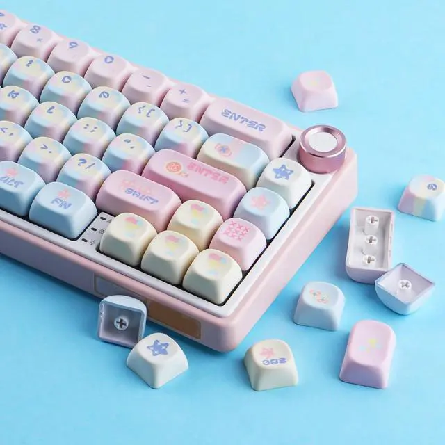 Cute and Unique DesignKeycaps are designed with cute color blocking cream candy, the style is cute and fun, the cute cream color scheme makes your mechanical keyboard unique