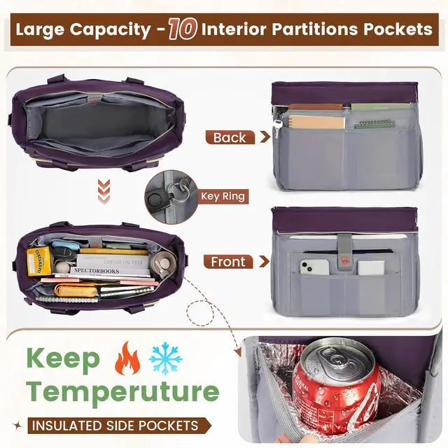 Functional Teacher Bag: The teacher laptop bag is spacious enough to store all your teaching materials. Various sized nylon and mesh pockets inside can hold pens, markers, notebooks, teaching aids, etc. This teacher tote bag comes with a padded laptop sleeve with Velcro, 15.6-inch laptop and 12.9-inch iPad. Insulated pockets on both sides are designed for snacks or coffee storage and keep cold or warm for hours