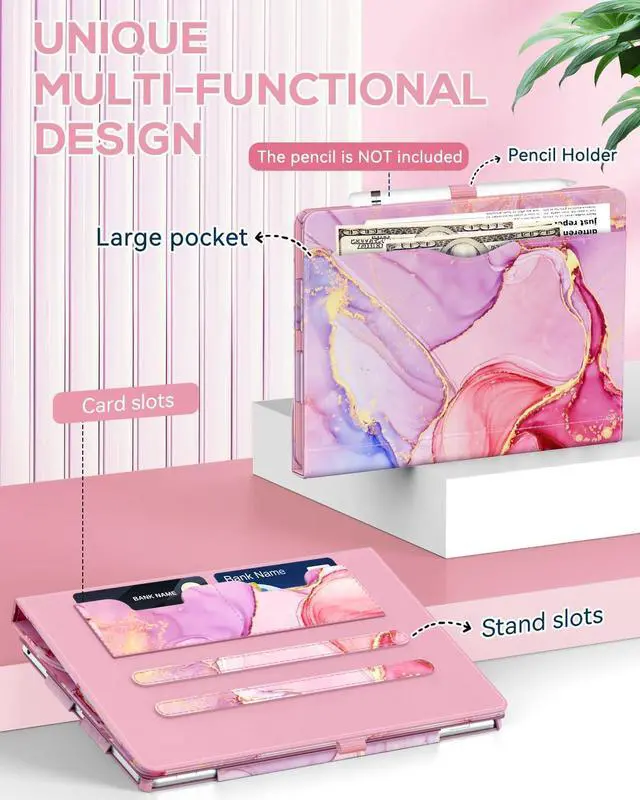 Multi-Functional Design: ZoneFoker 10.2'' protective case with a strap pencil holder is convenient for you to carry your apple 1st pencil without losing; document card pocket is designed for you to store your business cards, bank cards, notes or bills