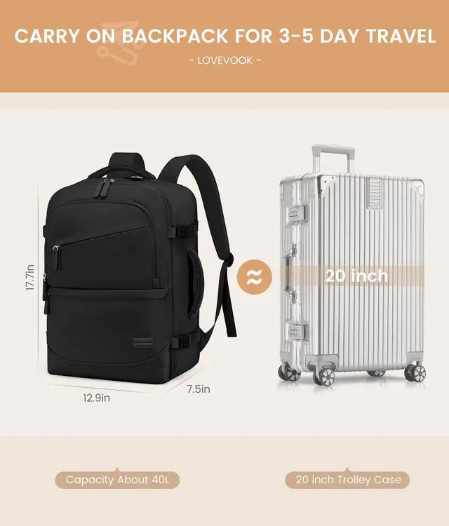 LOVEVOOK Travel Backpack for Women & Men, 40L Carry on Backpack Airline Approved, Large TSA Personal Item Travel Bag fits 17.3" Laptop, Business Weekender Bag for Essentials, 4Pcs