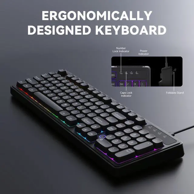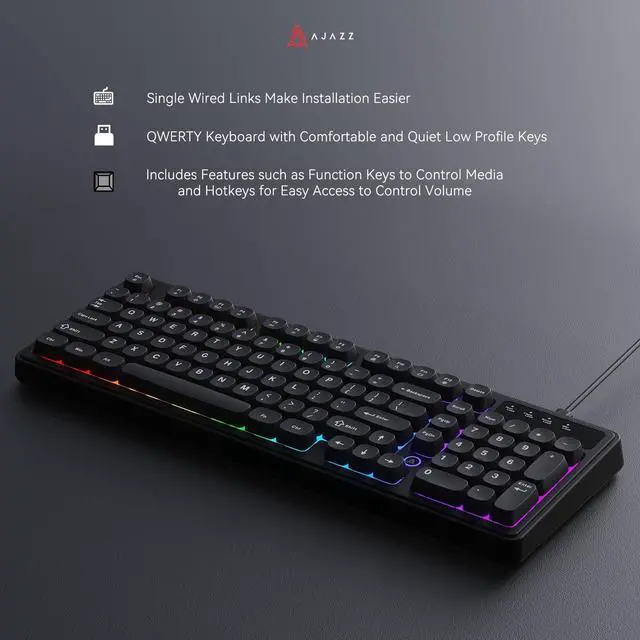 Ajazz AF98 Wired Office Keyboard, Ergonomic, RGB Lighting, Multimedia Function Keys, Adjustable Stand, Suitable for Windows Vista/XP/7/8/10/11 Mac, Andord.