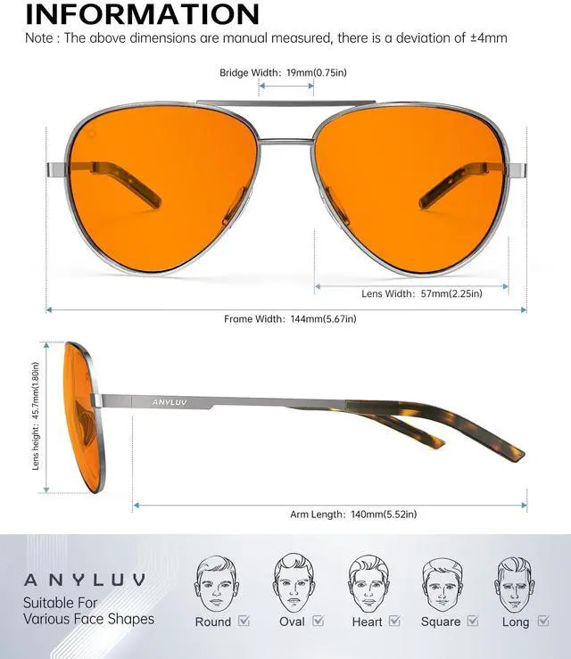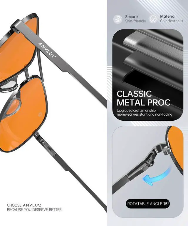 LIGHTTWEIGHT & All-Day COMFORT:ANYLUV's blue light glasses are made of lightweight materials, Features featherlight metal arms (under 25g) and a seamless nose pad designed to eliminate pressure points. Forget sore ears or nose bridgeswear these glasses comfortably for 12+ hours.