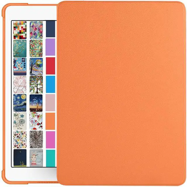 DuraSafe Cases for iPad 6th 5th Air 1st 2nd Gen 9.7 Inch [iPad 6 5 Air 1 2 ] A1893 A1822 A1566 A1474 MH2V2LL/A MRM52LL/A MP242LL/A Trifold Soft Silicone Shock Proof Magnetic Flip Case - Orange