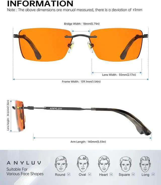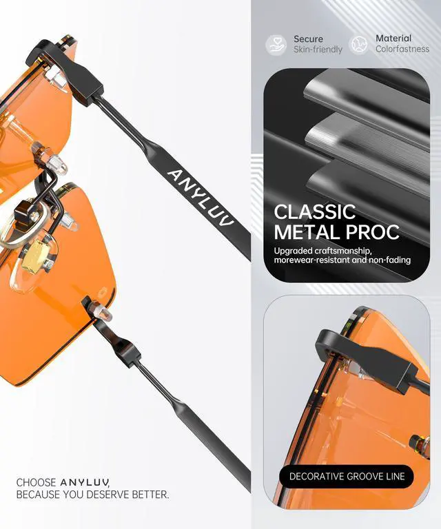 Zero Pressure Frameless Design: ANYLUV rimless construction eliminates pressure points, while flexible Metal hinges fit all face shapes whether you're a man needing durable blue light glasses men style or a woman seeking minimalist elegance.