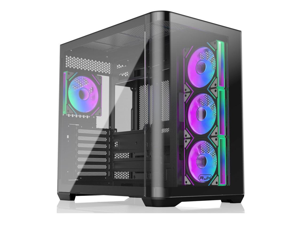 RAIJINTEK ATREUS BT4 Black Mid-Tower E-ATX PC Case, Curved Glass Front & Side Panels, 4 x 120mm Infinity Mirror ARGB PWM Fans, High-Airflow, Vertical & Horizontal GPU Support (0R20B00255)