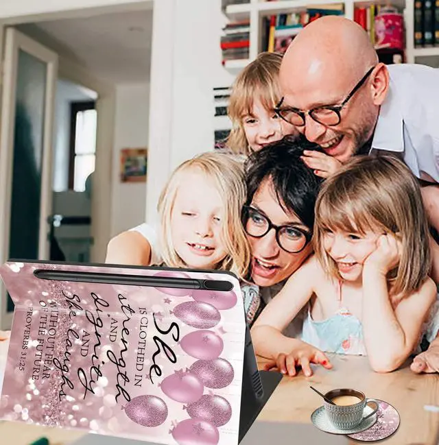 for 12.4 inch Samsung Galaxy Tab S8 Plus 2022/ Tab S7 FE 2021/ Tab S7 Plus 2020, with Coaster Adjustable Stand Auto Wake & Sleep Smart Cover - Bible Verses Proverbs 31:25 (Pen Bag)