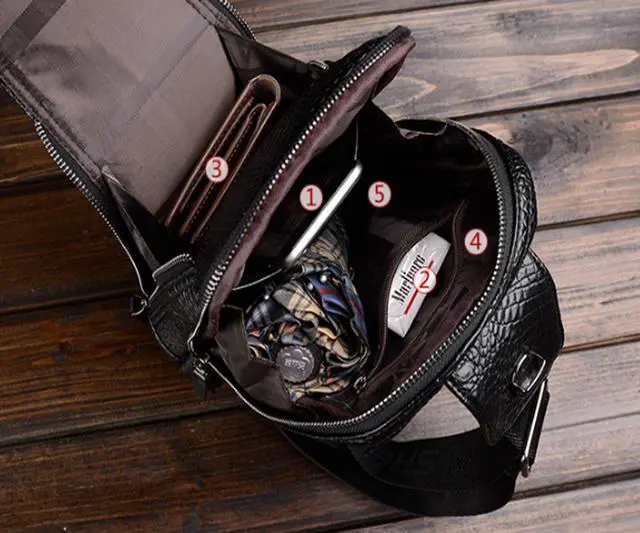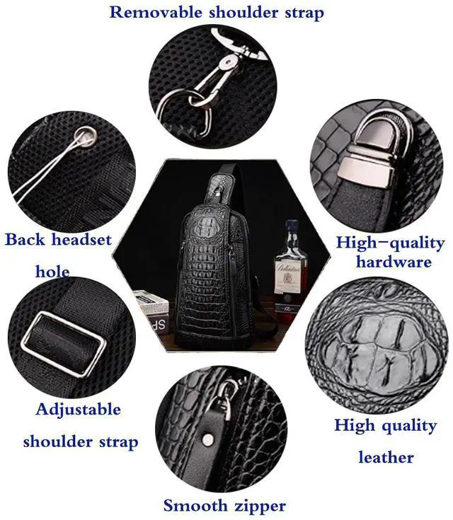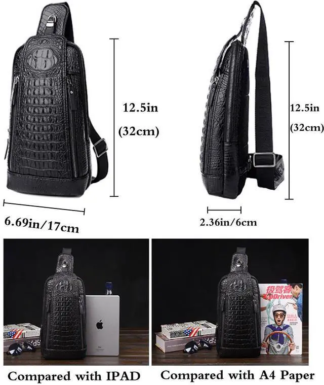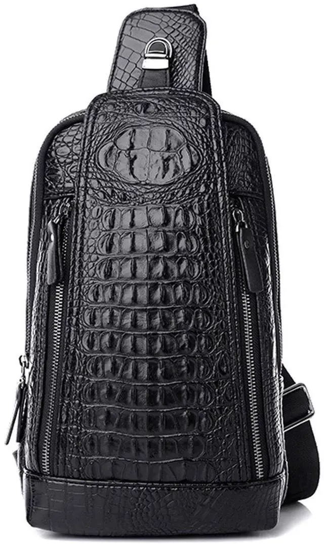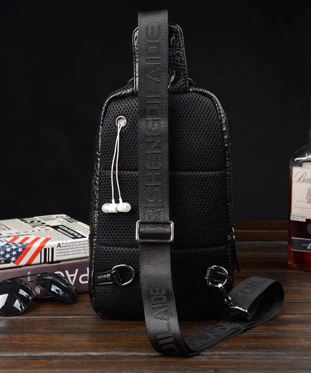 FiveloveTwo Mens Sling Bags Crocodile PU Shoulder Crossbody Chest Bag Satchels Hiking Daypack Black
