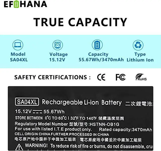 55.67W h SA04XL L43267-005 Laptop Battery Replacement for HP Envy X360 15-DR 15t-dr10015-DR0010TX 15-DS 15M-DS 15T-DR Series HSTNN-OB1F HSTNN-OB1G HSTNN-UB7U L43248-541 L43248-AC1 SAO4XL 15.12V