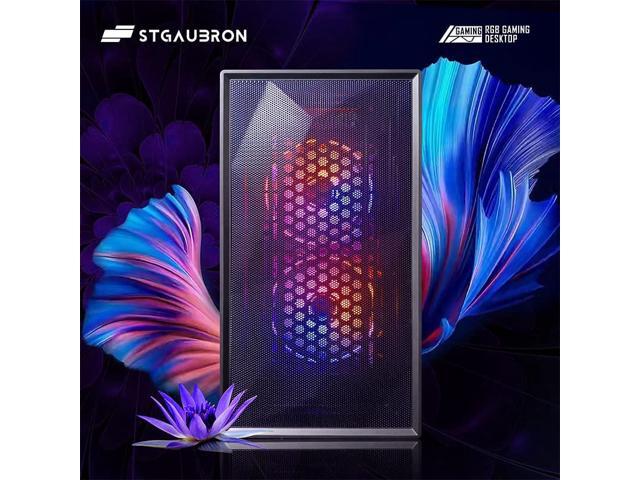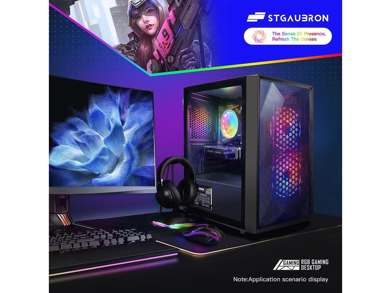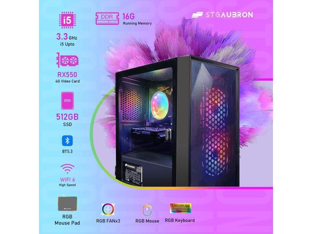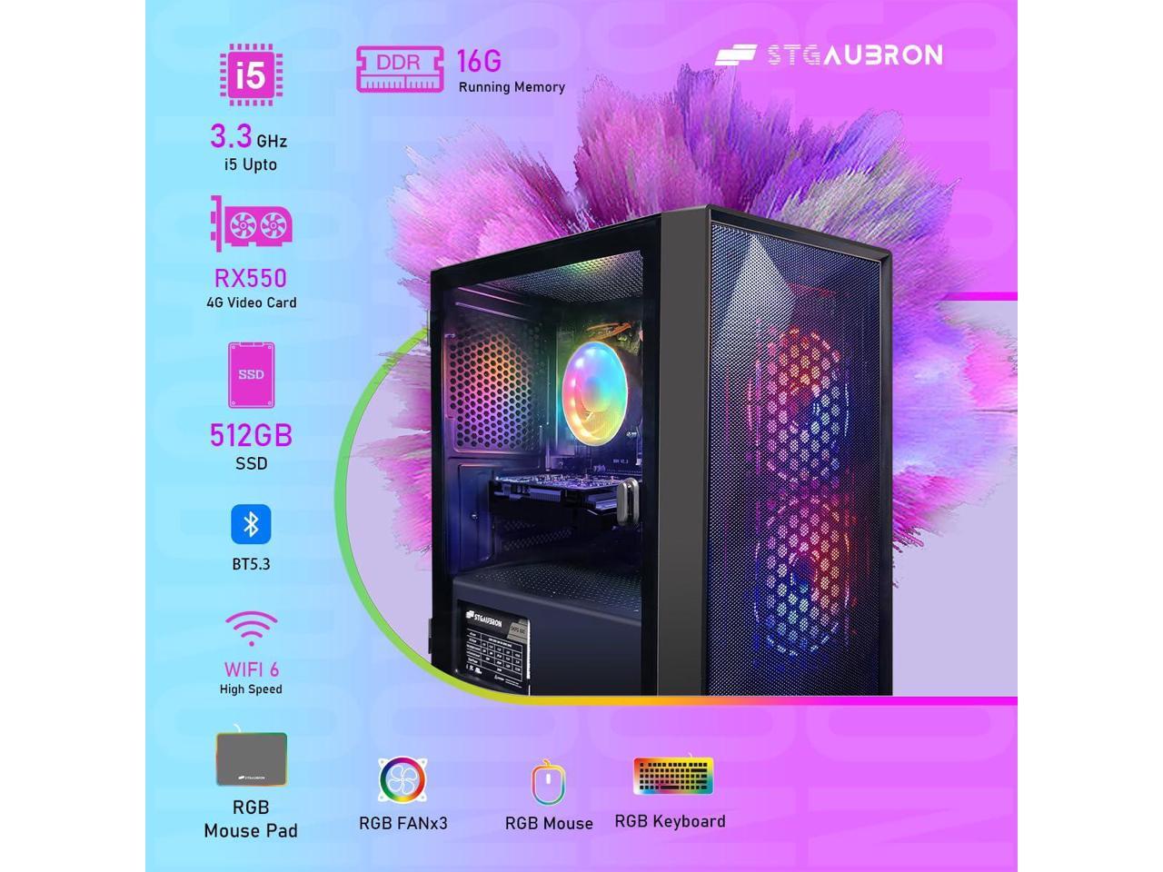 STGAubron Prebuilt Gaming PC Desktop, Radeon RX 550 4G, Intel Core i5 up to 3.7GHz, 16G RAM, 512G SSD, WiFi 6, BT 5.3, RGB Fan x2, Windows 11 Home