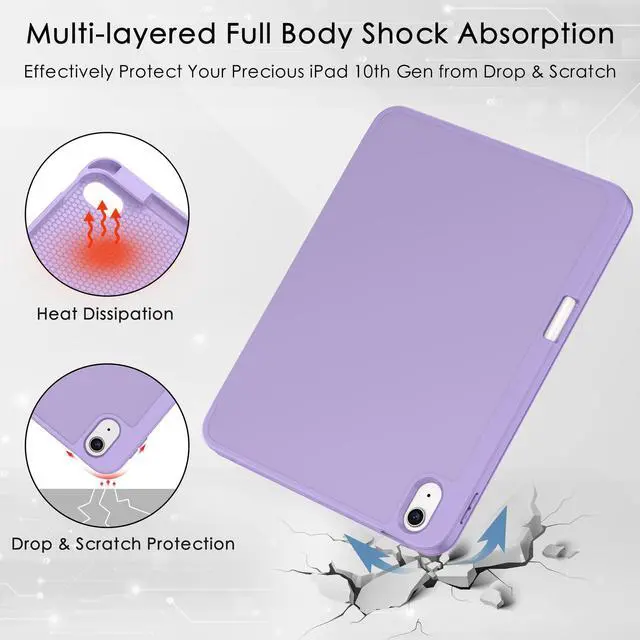 Soke Case for iPad (A16) 11th Generation 2025 11-inch, iPad 10th Generation 10.9 Inch (2022) with Pencil Holder, [Shockproof + Auto Sleep/Wake] Soft Back for iPad 11"/10.9" Cover, Lilac