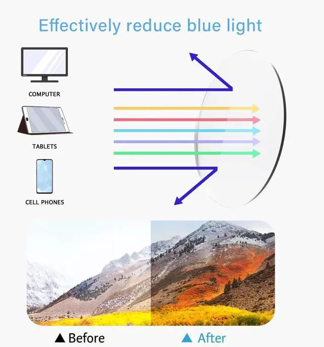 ANTI BLUE LIGHT - Cut 90% of the blue light. Relieving eye fatigue, dry and vision falling.