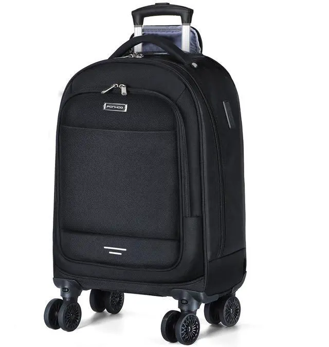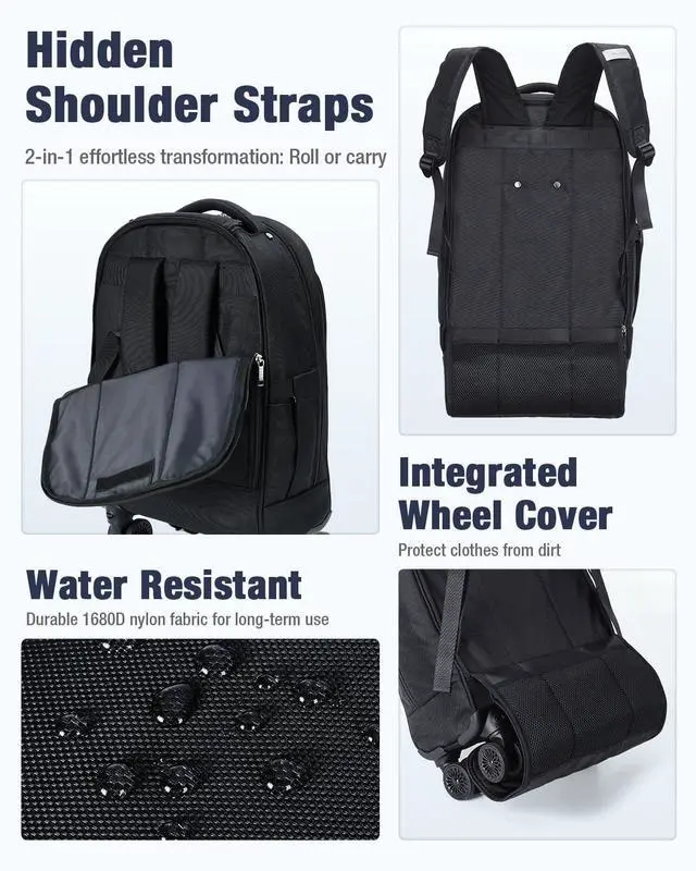 Ponhog Rolling Backpack with 4 Wheels, 15.6 Inch Travel Laptop Backpack for Women Men, Water Resistant Roller with USB Charging Port, Airline Approved Wheeled Work Bag, Black