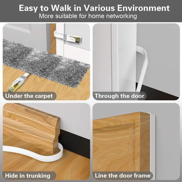 The flat wire design is optimal for running in tight locations or under carpeting and allows for 360 degree turns in small spaces. Ideal for home and office use.