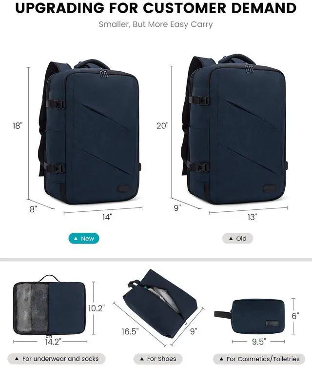 Upgrade Szie & MaterialUpgrading 8x14x18 inches with normal 40L travel backpack,meet smaller capacity demand.Upgrading polyester fabric and wet bag, more durable and practical for your daily,travel.