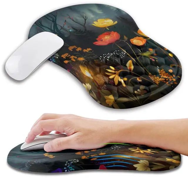 Kuosgm Ergonomic Mouse Pad Wrist Support with Memory Foam Massage Bulge, Carpal Tunnel Pain Relief Mousepad Wrist Rest for Mouse(12x8 inch, Midnight Forest)