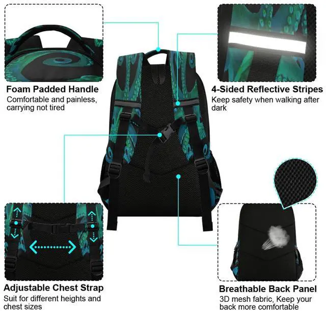 • 4-Sided Reflective Stripes: The school backpacks are made with durable fabric, breathable back panel, smooth double zipper closure easy to pull, adjustable padded shoulder strap release back and shoulder pressure, with adjustable buckle fixed strap to prevent slipping, quality sturdy plastic buckle for lasting use, in colors&designs to reflect your style, exude a unique charm, reflective strips on four sides have a obvious effect, with protective function under the illumination of night light