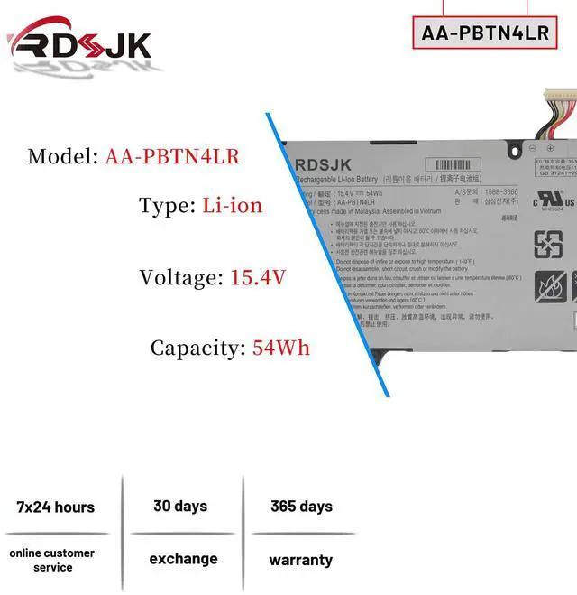 AA-PBTN4LR Laptop Battery for Samsung 9 Pro NP940X3M NP940X3M-K01US NP940X3M-K02US NP940X3N NP940X3N-K01 NP940X5M NP940X5M-X01US NP940X5N NP940X5N-X01US NT930SBE NT950SBE NT950SBV Series 15.4V 54Wh