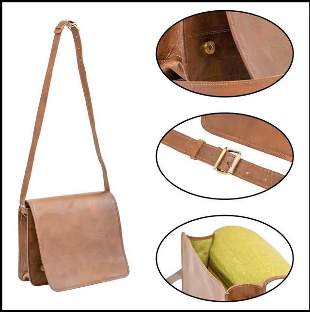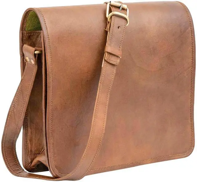 18 inch Leather Full Grain Messenger Handmade Bag A stylish satchel designed for modern men who love to be organized, with a vintage look that withstands you in all your business trips or meetings. 100% Authentic Strong & Durable Multiple Carry Options