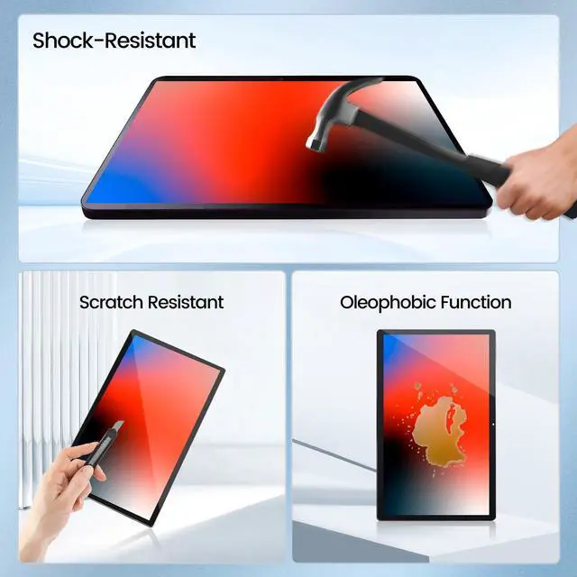 Anti-Fingerprint & Easy to CleanOleophobic coating repels oil, smudges, and fingerprints, keeping your screen cleaner and clearer for longer perfect for extended tablet use.