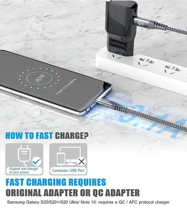 sweguard USB Type C Cable 3.1A Fast Charging [2Pack, 20ft+10ft], USB-A to USB-C Charger Nylon Braided Cord for Samsung Galaxy S21 S20 S10 S9 S8 Plus, Note 20 10 9 8 7, A71 A51 A32, LG, Moto, PS5-Grey