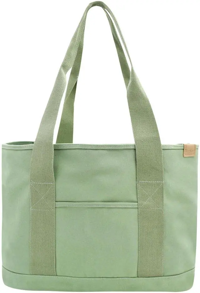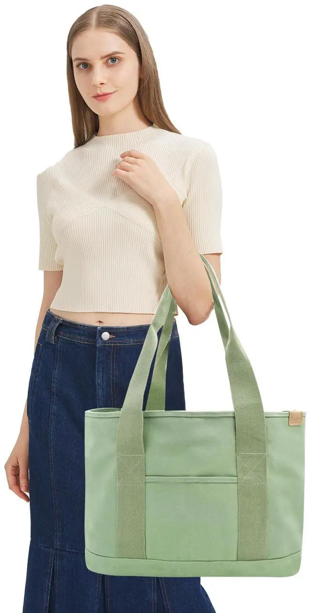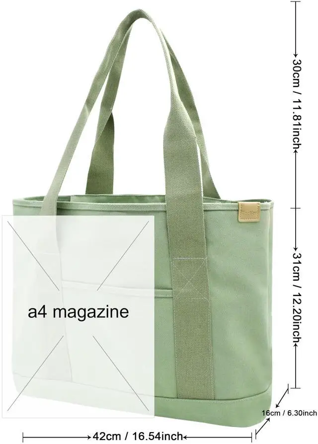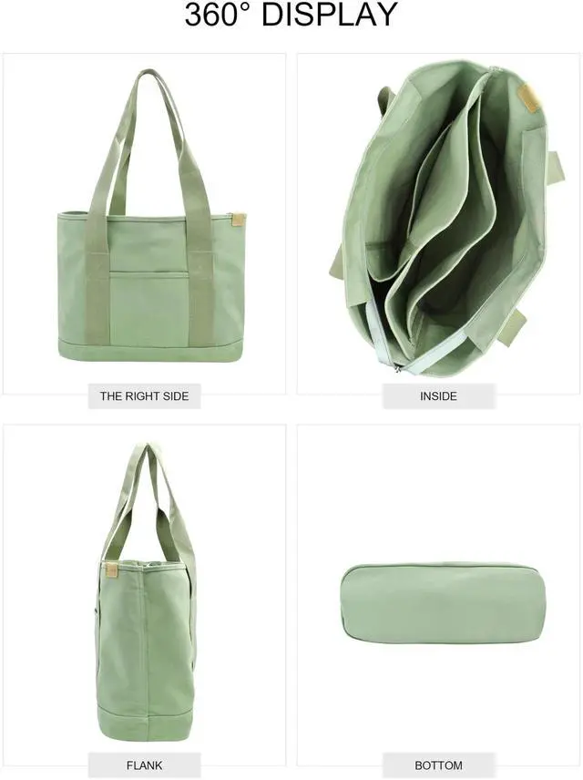 Canvas Tote Bag Casual Multi pockets Handbags Large Capacity Shopping Shoulder Bag with Laptop Layer Work Purses green L