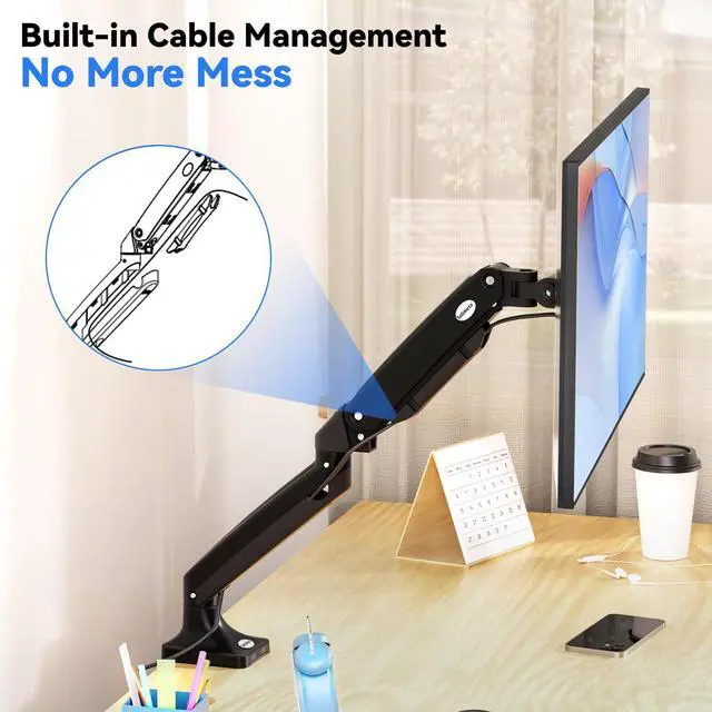 Solimeta Gas Spring Monitor Mount with Constant Force Adjustment - 17-35 Inch Monitor Stand, Die-Cast Aluminum Base, 6.6 -22 lbs Capacity, +85°/-50° Tilt, VESA Compatible, Cable Management