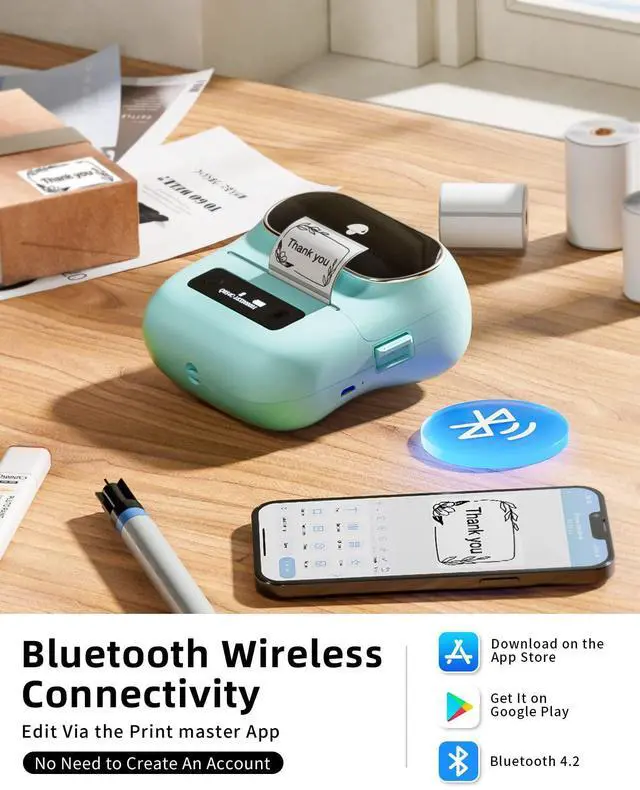 Cost-Saving for Your Business Bluetooth Thermal Label printer utilizes advanced thermal direct technology for printing. Give you a NO Ink, NO toner, Comfortable office environment! Not only an economical choice but also environmentally friendly for our planet. Say goodbye to the hassle of label printing and hello to convenience.