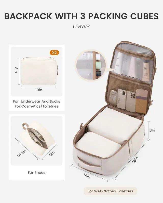 LOVEVOOK Travel Backpack,40L Carry On Backpack Large Fits 17.3" Laptop,TSA Personal Item Travel Bag with 3 Packing Cubes,Water Resistant Laptop Bag Travel Essentials for Weekender Business Hiking