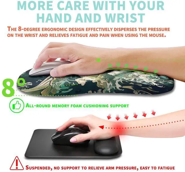 Wrist CareThe perfect combination of ergonomic 8-degree slope and massage bumps can effectively relieve wrist pain and fatigue, improve carpal tunnel syndrome (CTS), strengthen the air circulation between the wrist and the mouse pad, keep dry, Let your wrist be in the most comfortable state.
