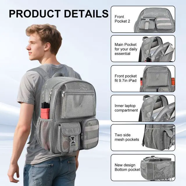 High-Quality MaterialThis mesh backpack is constructed from a premium, lightweight mesh material that is renowned for its durability. The mesh is not easy to break when subjected to strong external force.