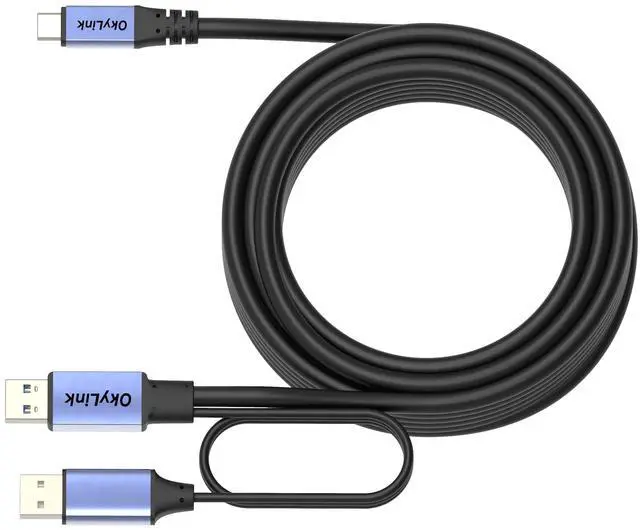 OkyLink Active USB 3.0 / 3.2 Gen1 A to C Data Cable 32ft/10M High-Speed 5Gbps, Signal Amplifier, Optional Power, Long-Distance Cable for VR, SSD, Docking Station, Printer