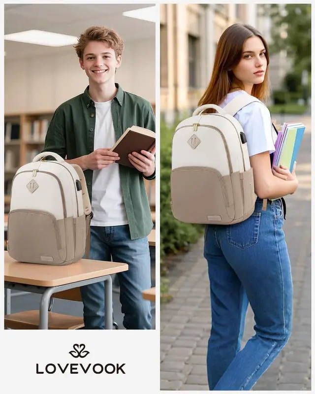 • LOVEVOOK School Backpack for Women Men Classic Backpack with 17.3" Laptop Compartment Lightweight Bookbag for College Work High School