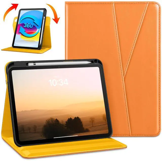 DTTO Rotating Case for iPad (A16) 11th Generation 11 Inch 2025, iPad 10th Generation 10.9 Inch 2022, 360 Degree Swiveling Premium Leather Folio Stand Cover with Pencil Holder, Orange