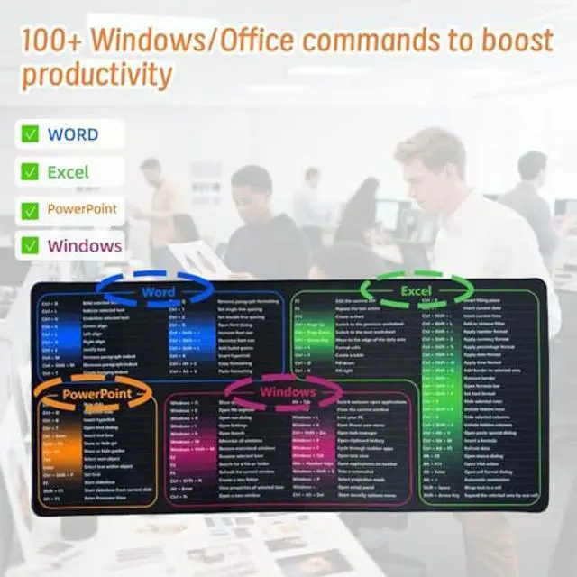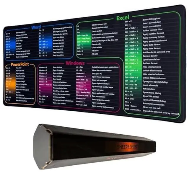 Instant Excel Shortcuts ReferenceThis mouse pad features a crisp-printed excel cheat sheet mastering 100+ Windows/Office commands to boost productivity.