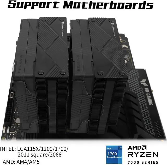 Overall refinementThe cpu radiator adopts anodic black frosted process, the twin towers of the radiator body present a frosted texture, with 7 fully plated and blackened heatpipes, as well as a precision micro-engraved reflow soldered copper base, which greatly enhances the overall performance of the radiator; avoiding the treatment of the graphics card allows for greater compatibility of the cpu cooler.
