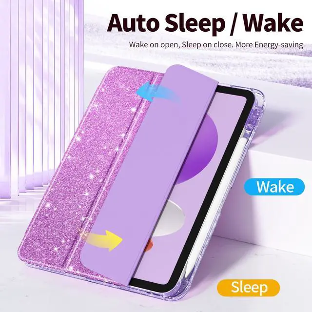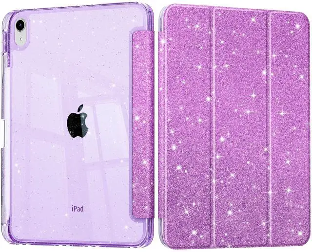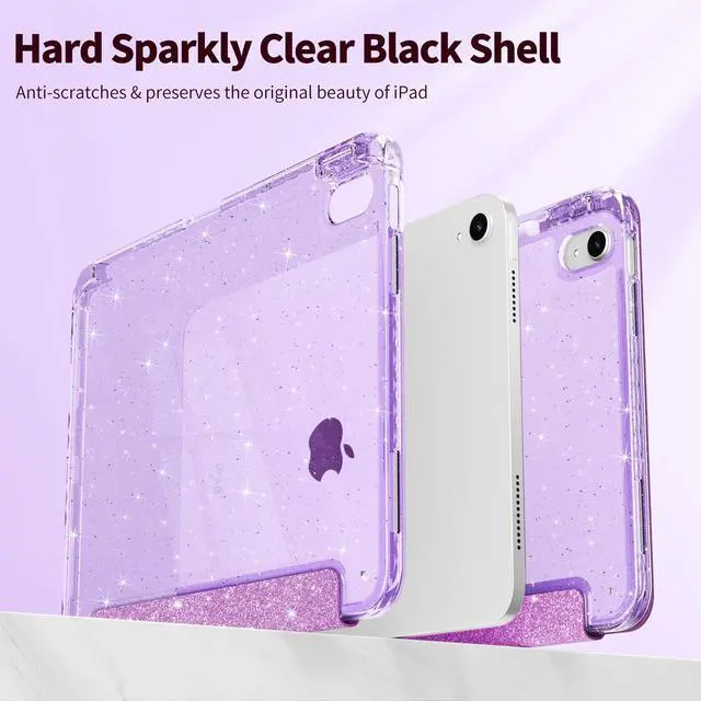Lepeoac Sparkly Case for iPad 11 inch A16 2025 Generation 11th / iPad 10.9 inch 2022 10th Gen, Buit in Pencil Holder with Glitter Transparent Back Cover Trifold Stand Auto Wake/Sleep, Sparkly-Purple